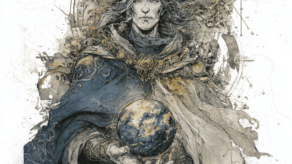 Long before the first mortal set foot upon the soil of Alkainos, there was only the Void. From that silence came the Veda Gate, a single radiant point that unfolded into a colossal golden portal. Through it entered Agramanthon, a primordial being shaped like a drifting, star-speckled leviathan. His presence seeded the darkness with light. When he exhaled, the heavens formed in a cloud of scattered constellations. A second being emerged soon after. This was Xanthos, one of the Vedovi….